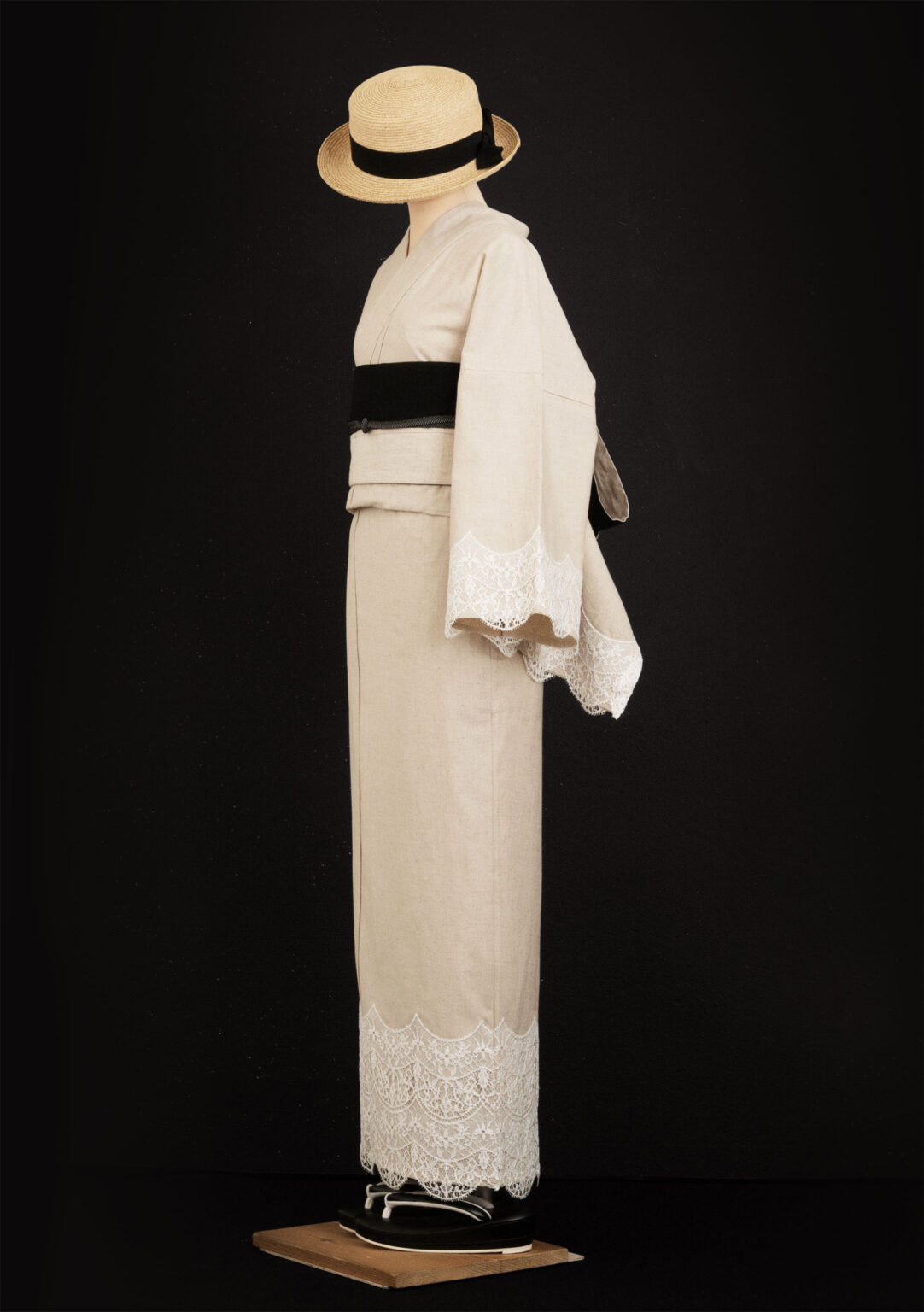 ・クロス着物 フリルトップス(アンティークホワイトレース柄)