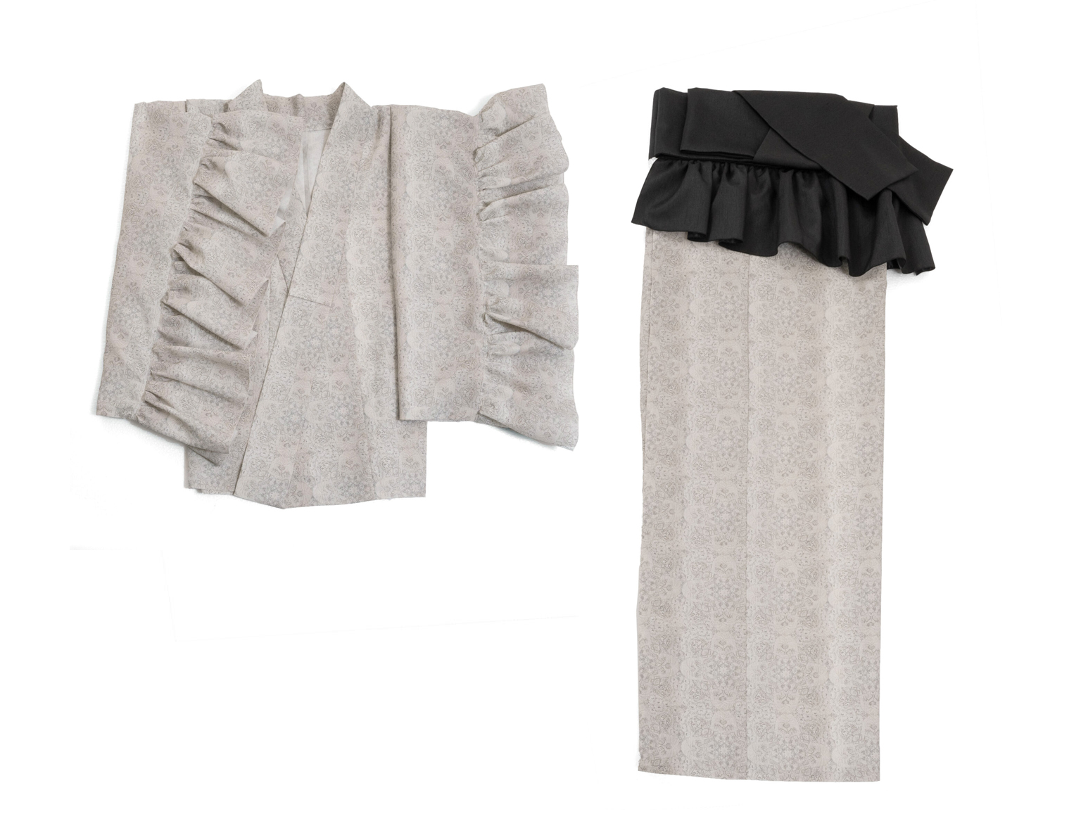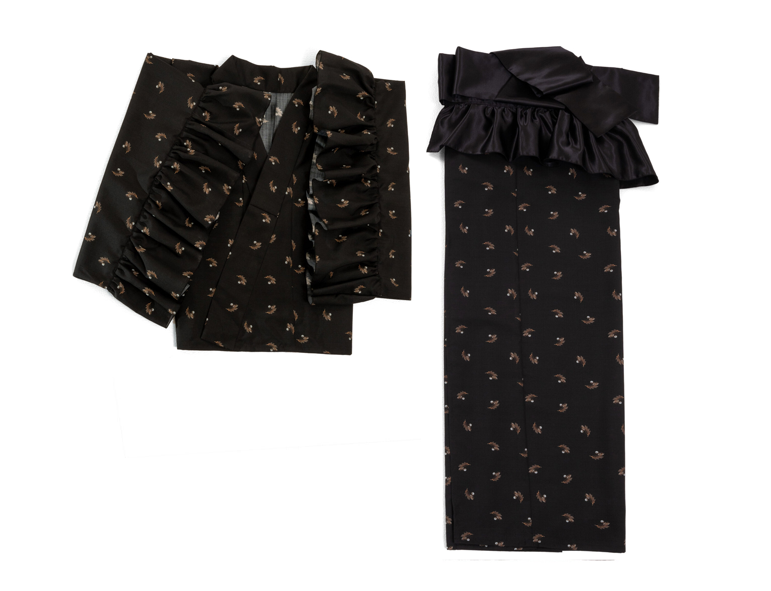 ・クロス着物 フリルスカート(バイカラー・ブラック)