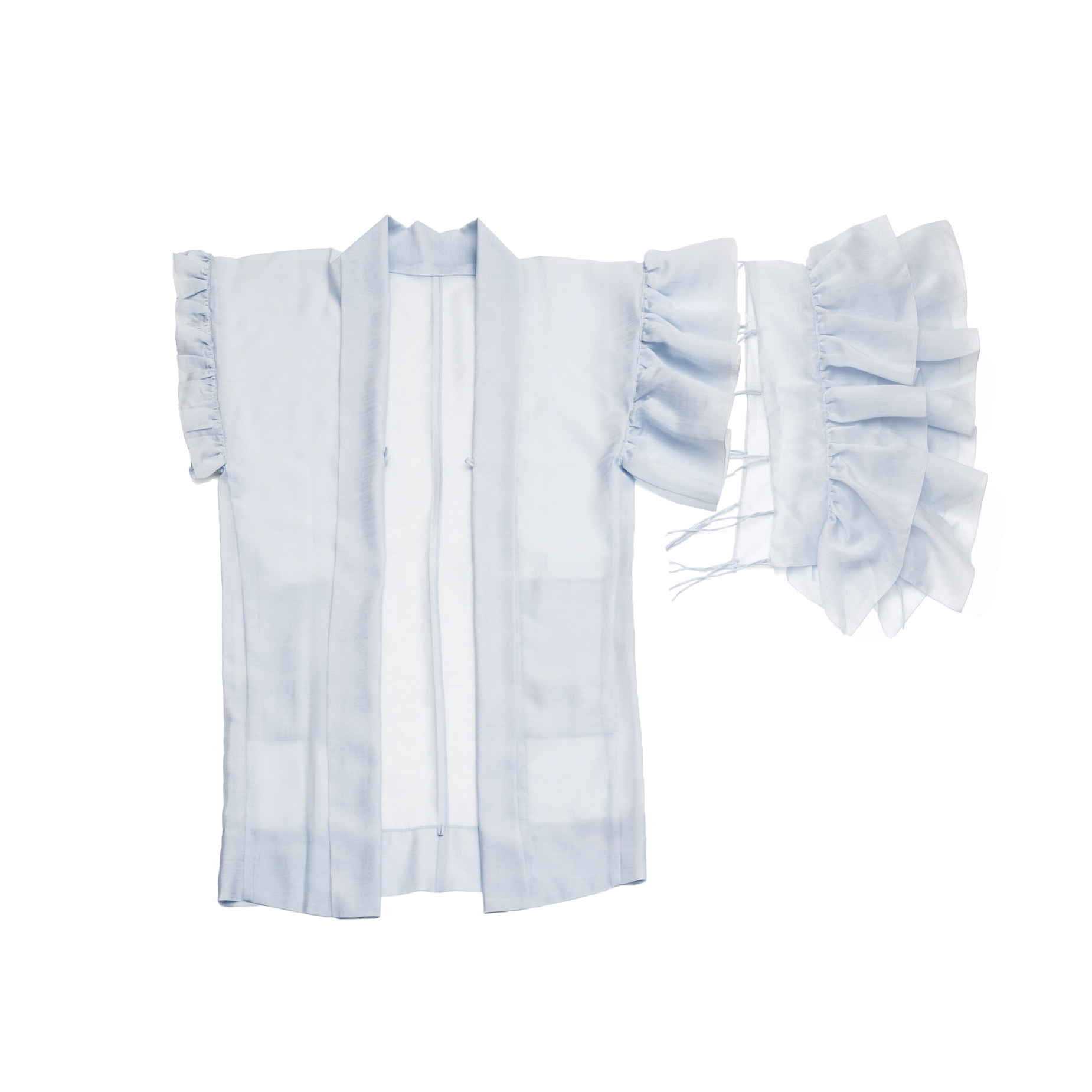 品名:フリルジレ羽織(シャンタン・ライトブルー)