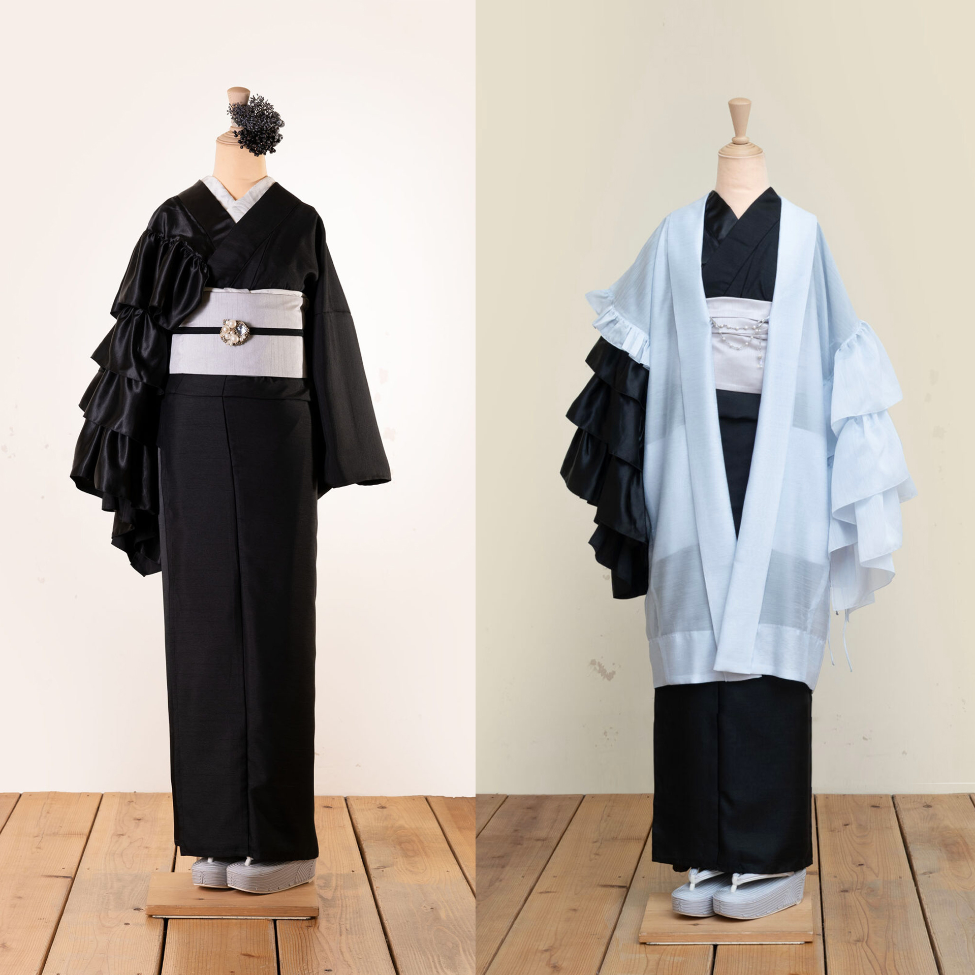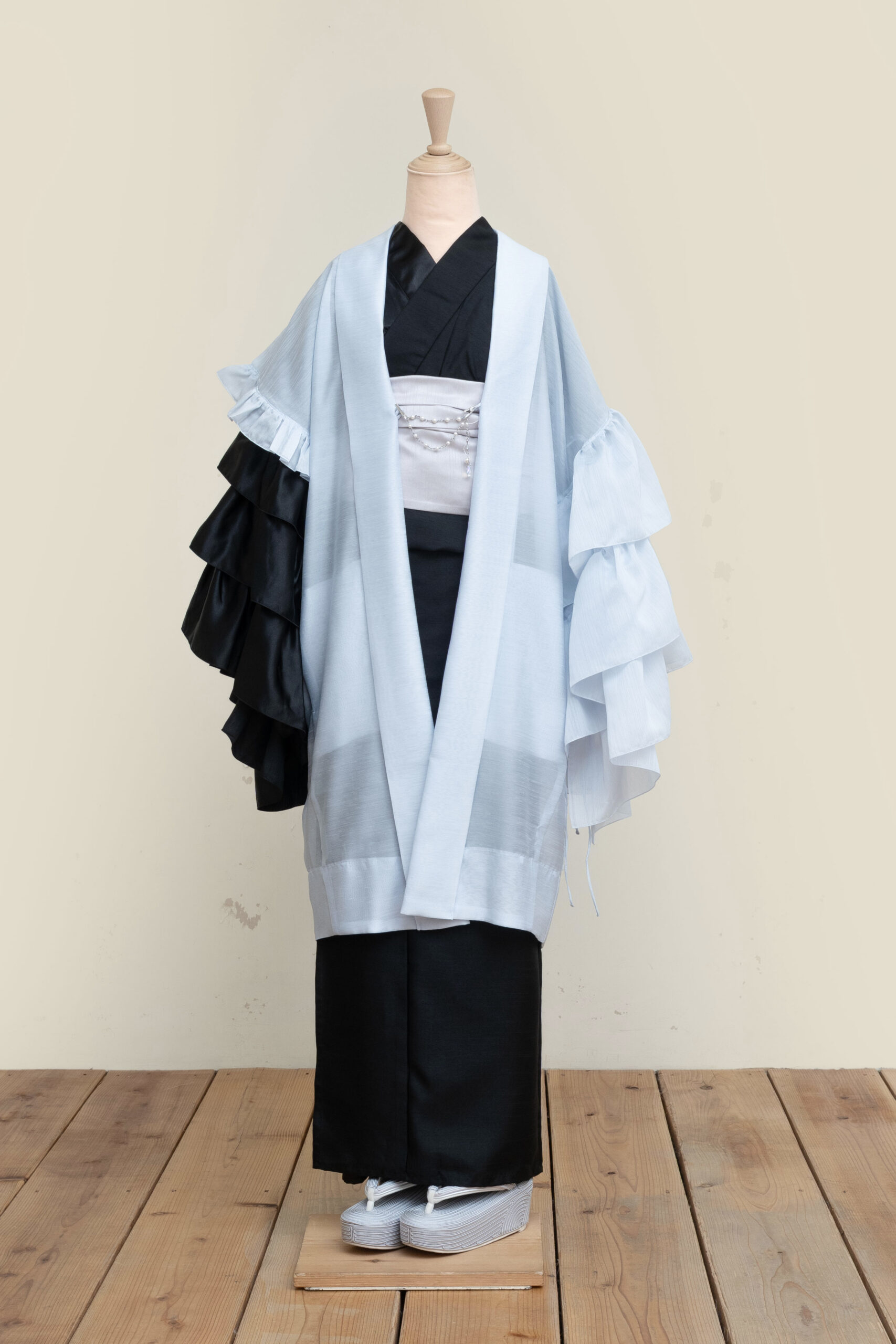 今まで発売したどのフリル着物とも合わせられるようにデザインした羽織ものです。
