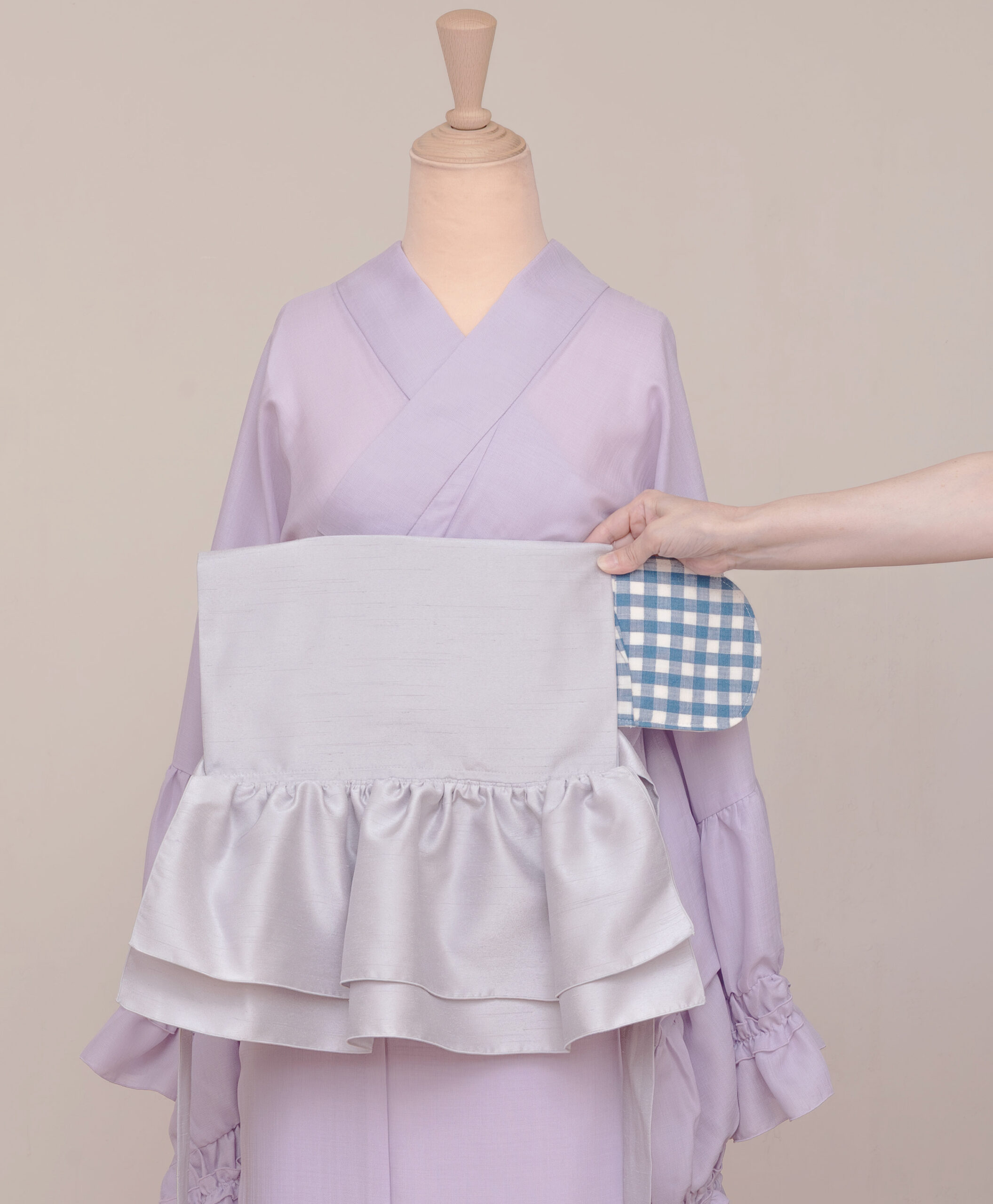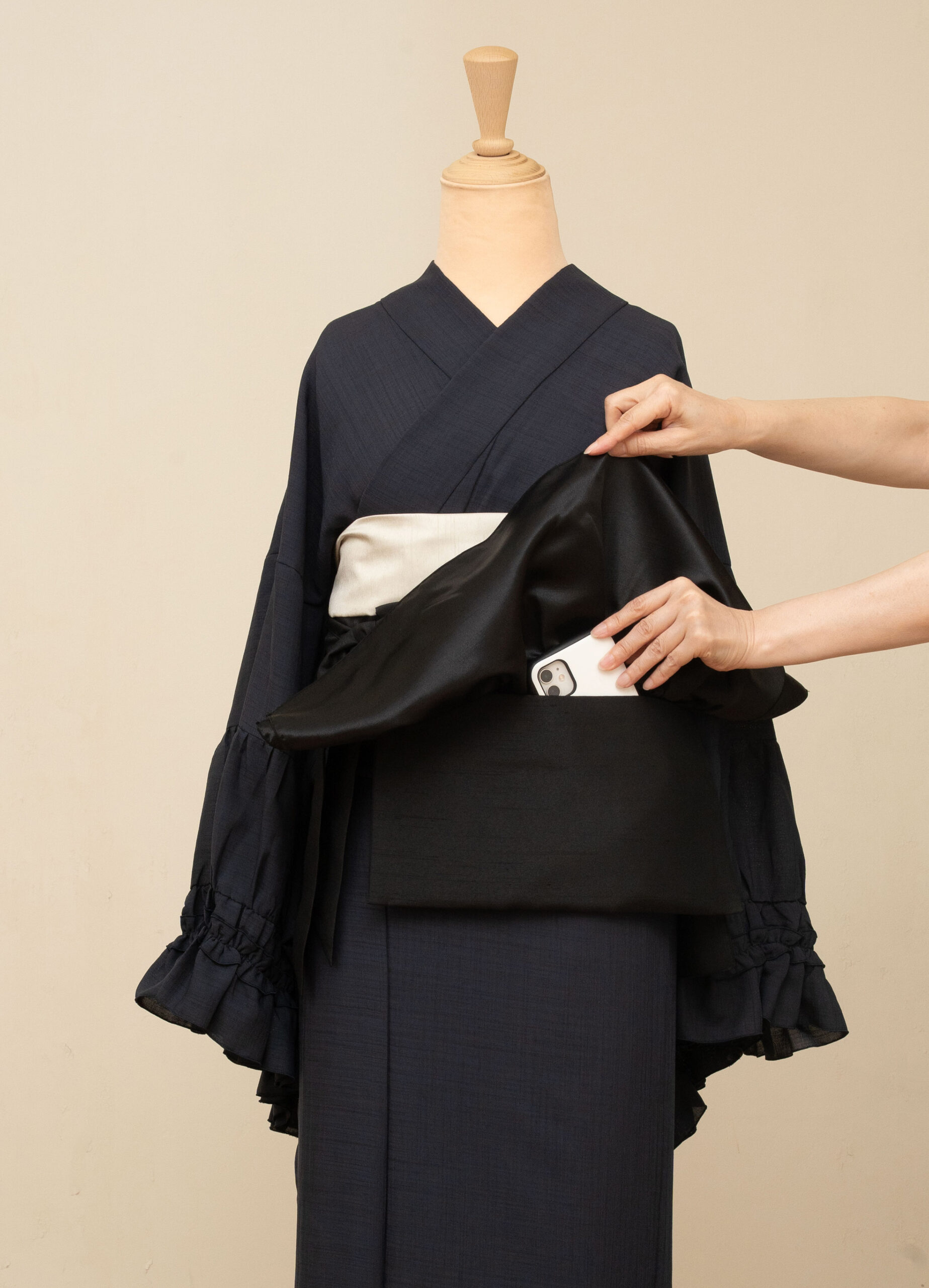 ポケット部分の横幅は約31cm。おたいこ幅と同じなので帯と組み合わせたアレンジに自然と馴染みます。