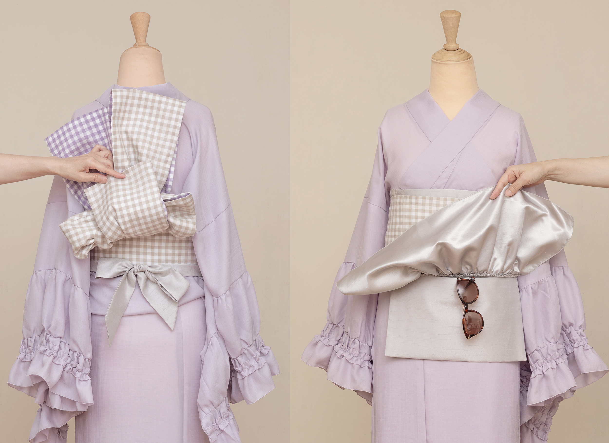 結び方のアレンジなどフリル帯ポシェット(シルバー)の方でも色々ご紹介しておりますのでぜひ併せてご覧下さいませ。