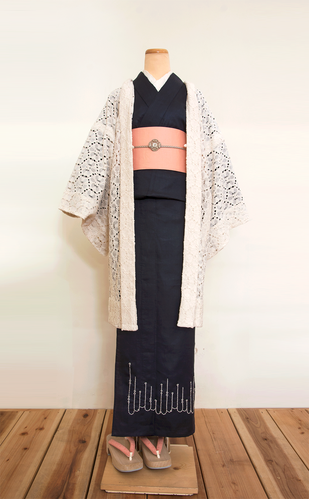 商品名:ひとえ羽織 コードレースフラワー アイボリー