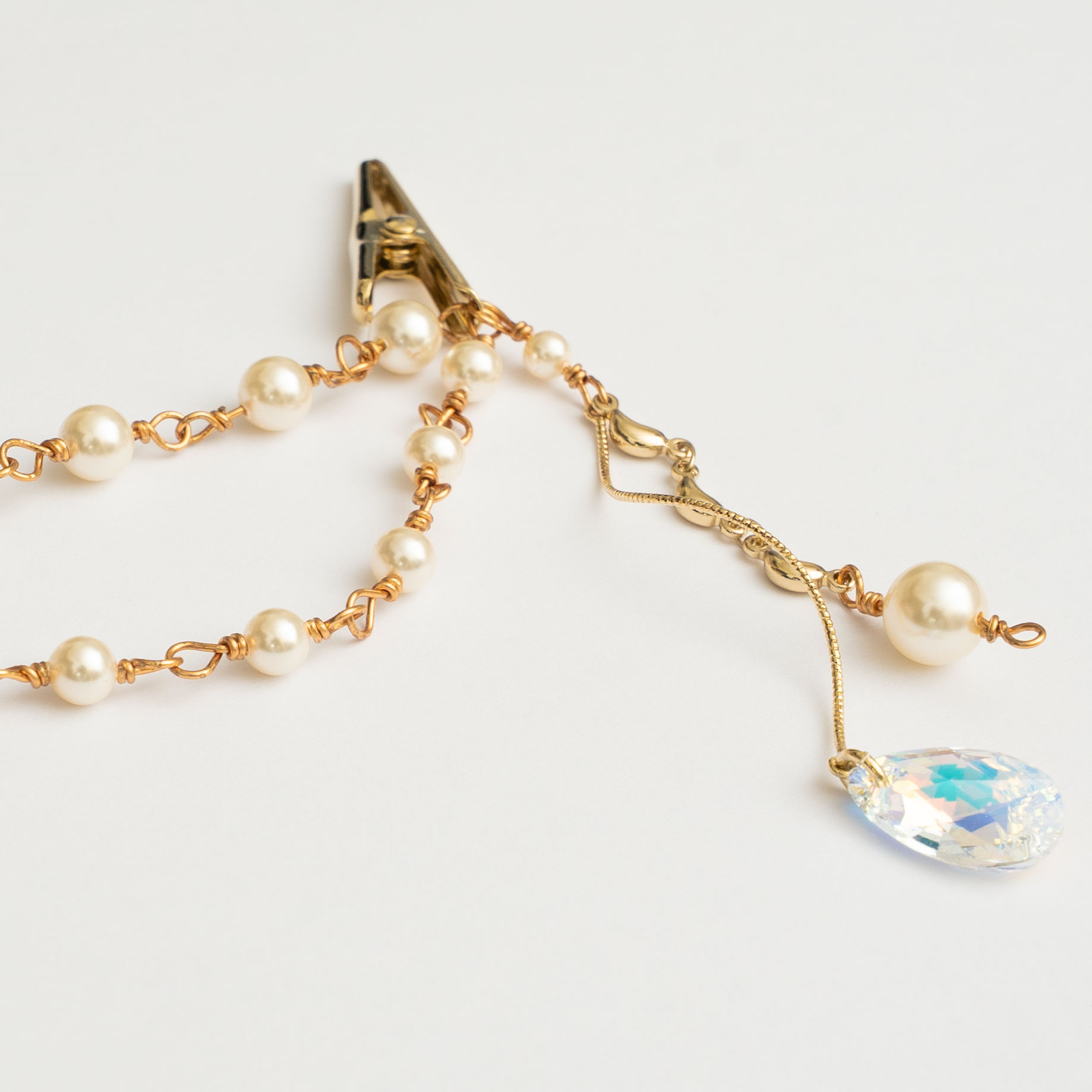 パールビーズとクリスタルビーズの組み合わせが上品な華やかさを演出。