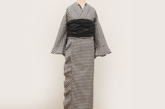 小さめのギンガムチェックは幅広い着こなしにフィットしますので柄物の半幅帯で気軽に遊んでみるのもおすすめ。