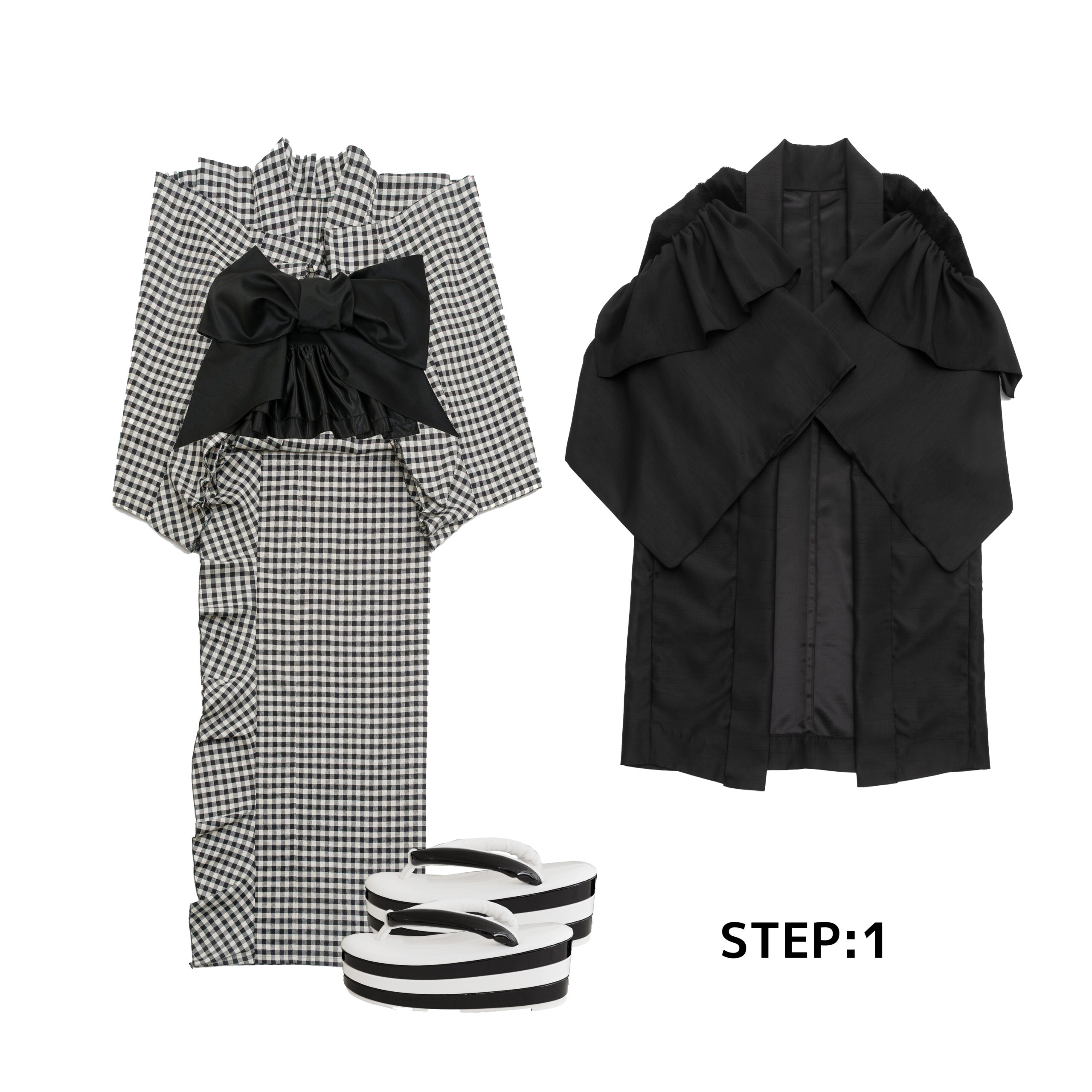 着物以外を無地モノトーンでまとめると甘い印象になりすぎないので、フリルシリーズを初めてトライして下さる方にもおすすめです。