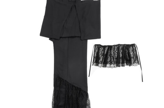 すっきりとしたベースとふんわりと広がる裾レースとのコントラストが美しい1枚です。