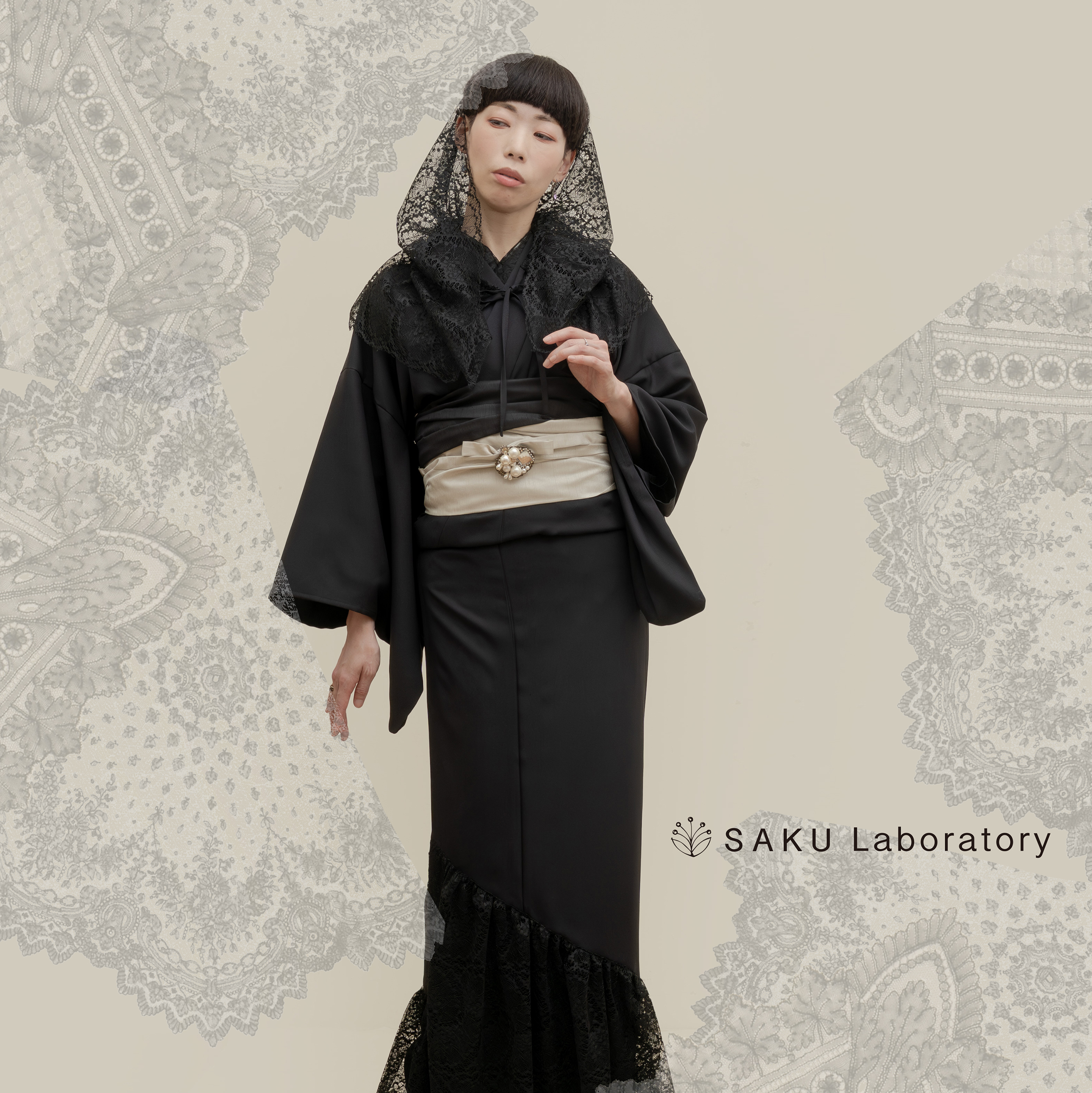 レースアクセサリー着物(ブラック)