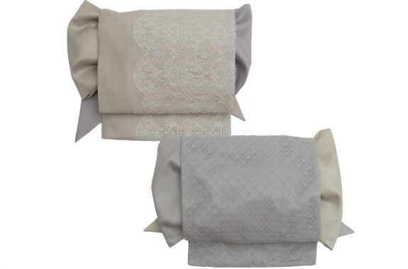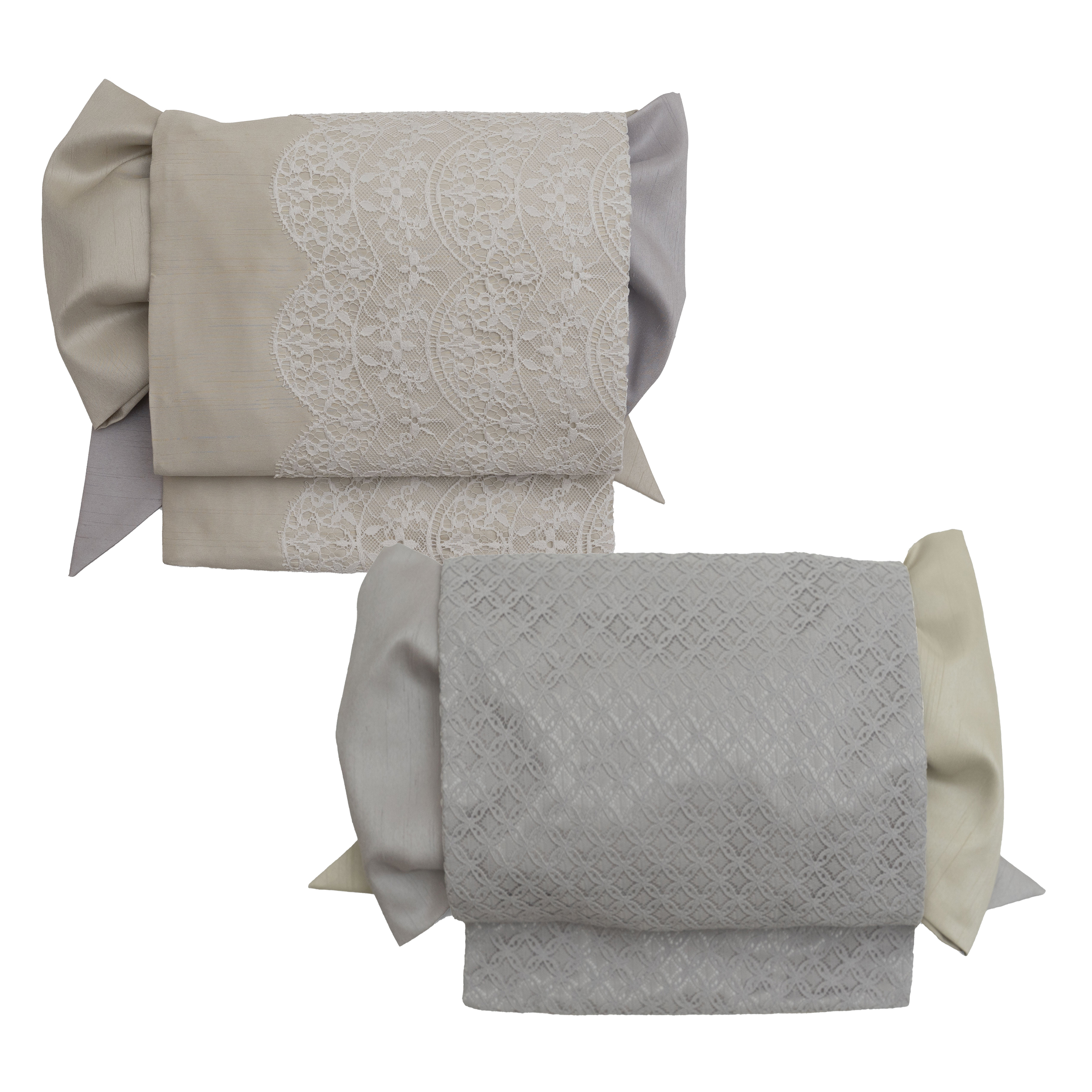 たれはサンドベージュにホワイトのレースがあしらわれた面とグレーサテンの上に同色のレースを重ねた面のリバーシブル仕様