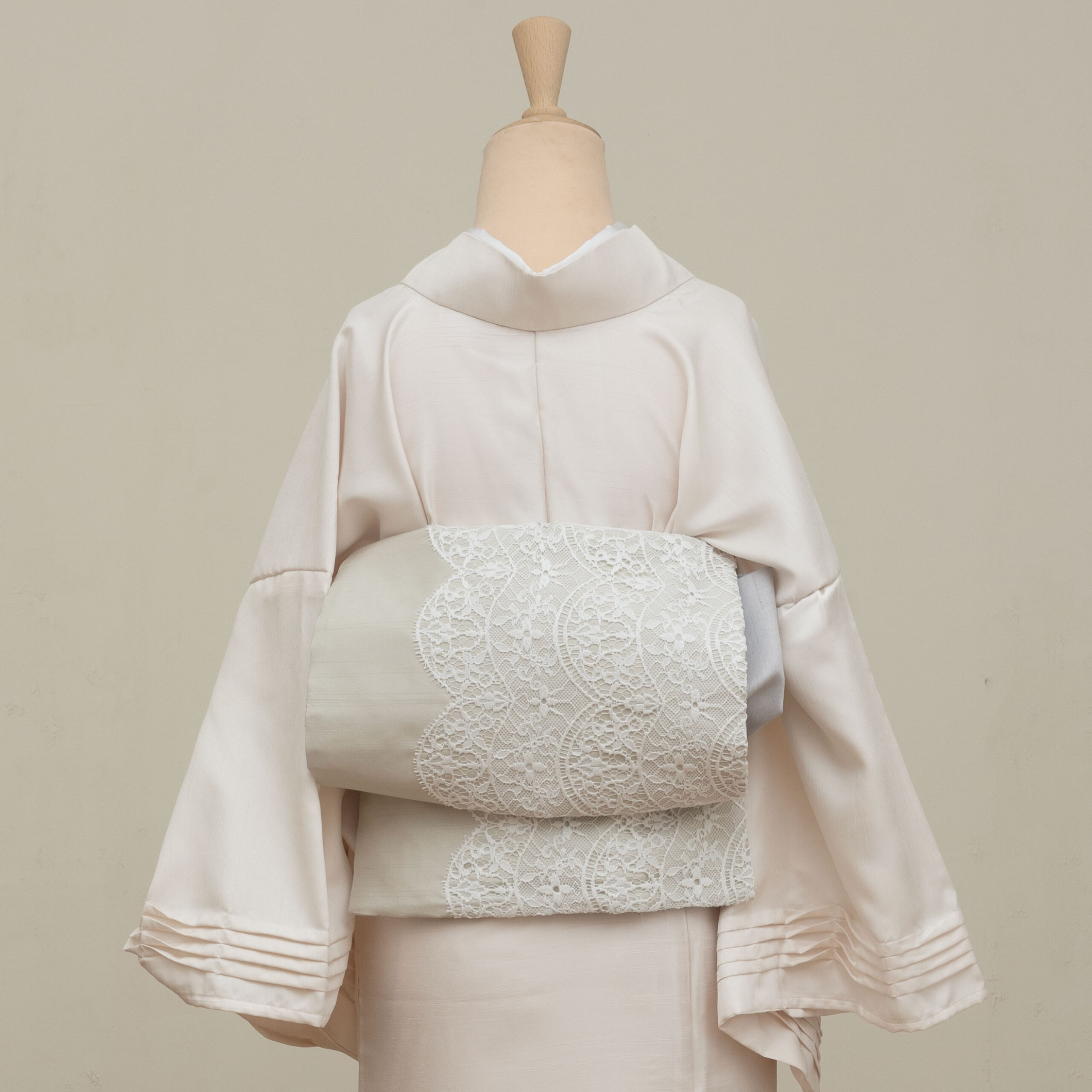 <結び方:着付た時たれがサンドベージュ×ホワイトレース面になる場合>