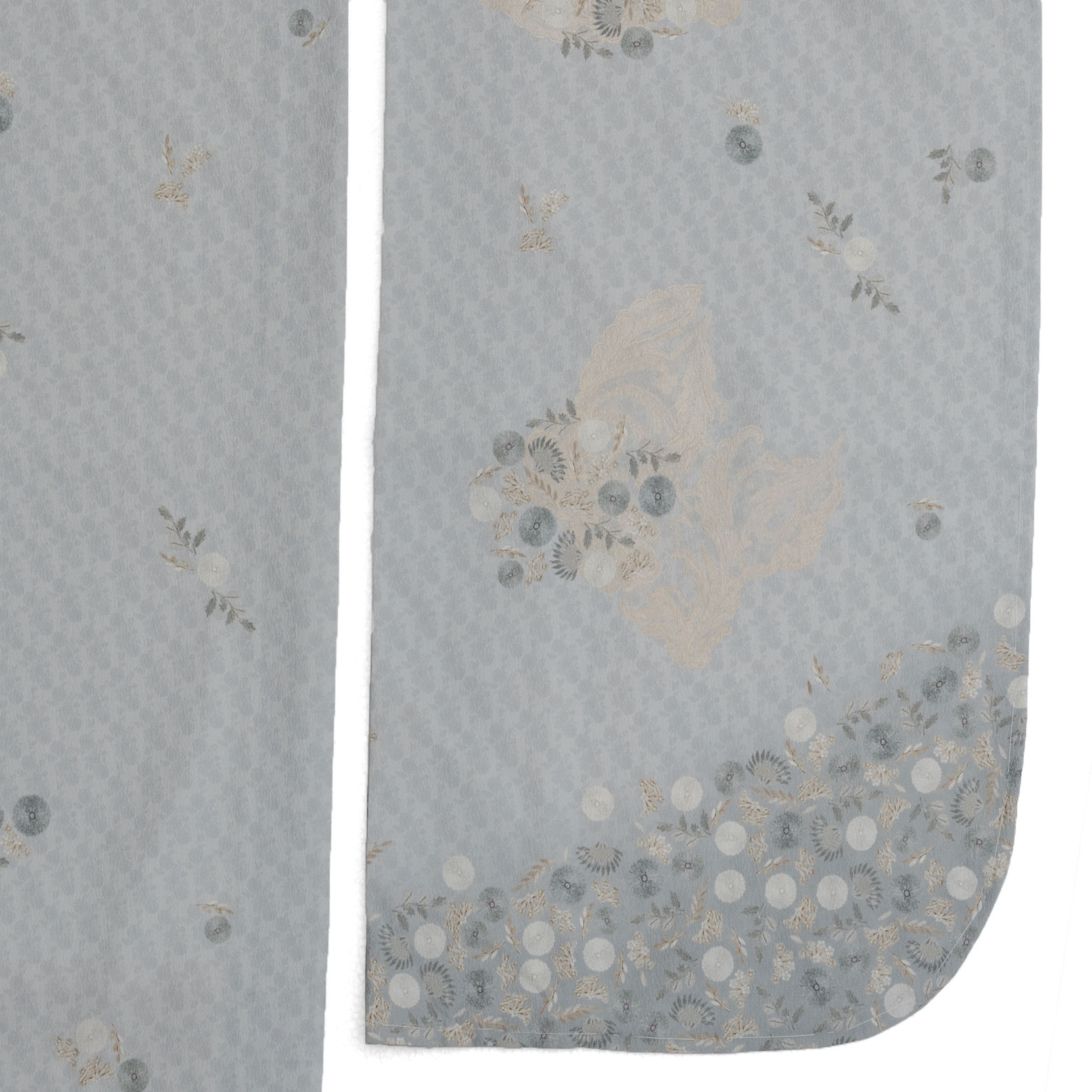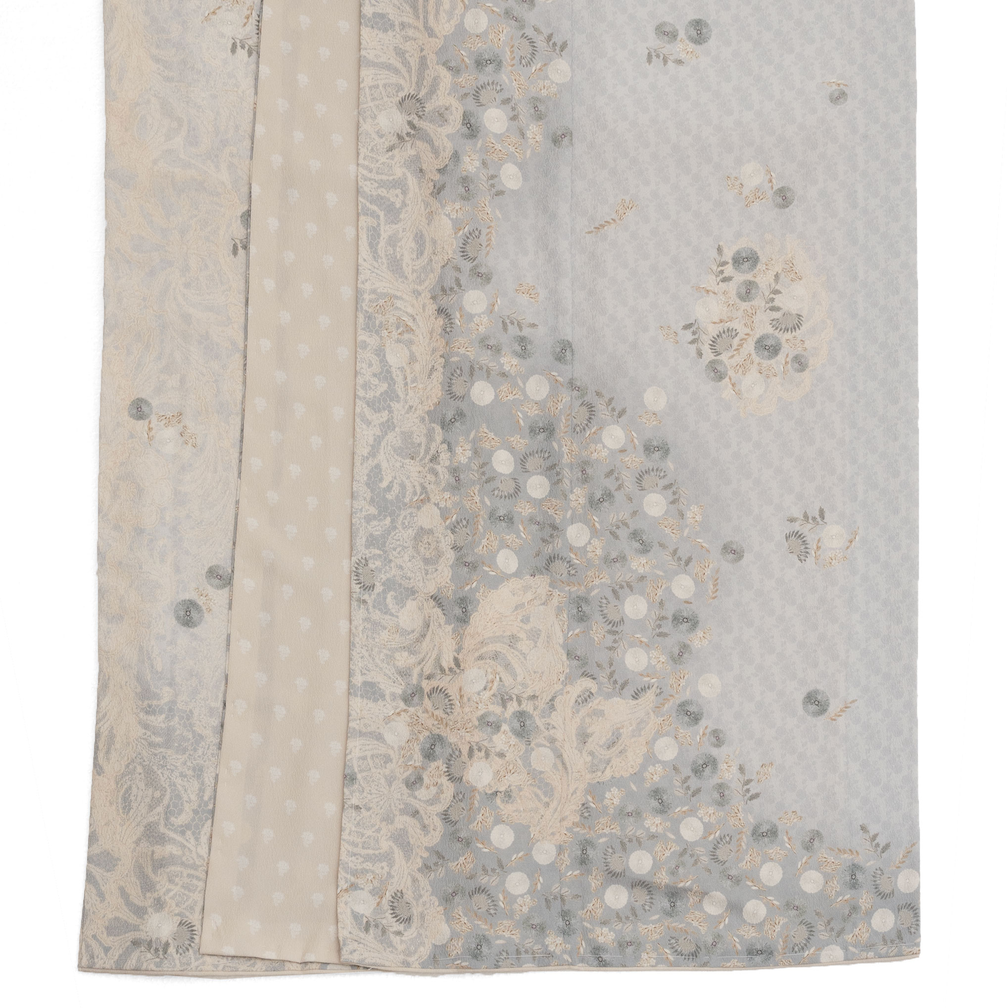 ベースにもうっすらと浮かび上がる小花模様。何層にも柄が重なった奥行きのある風合い。