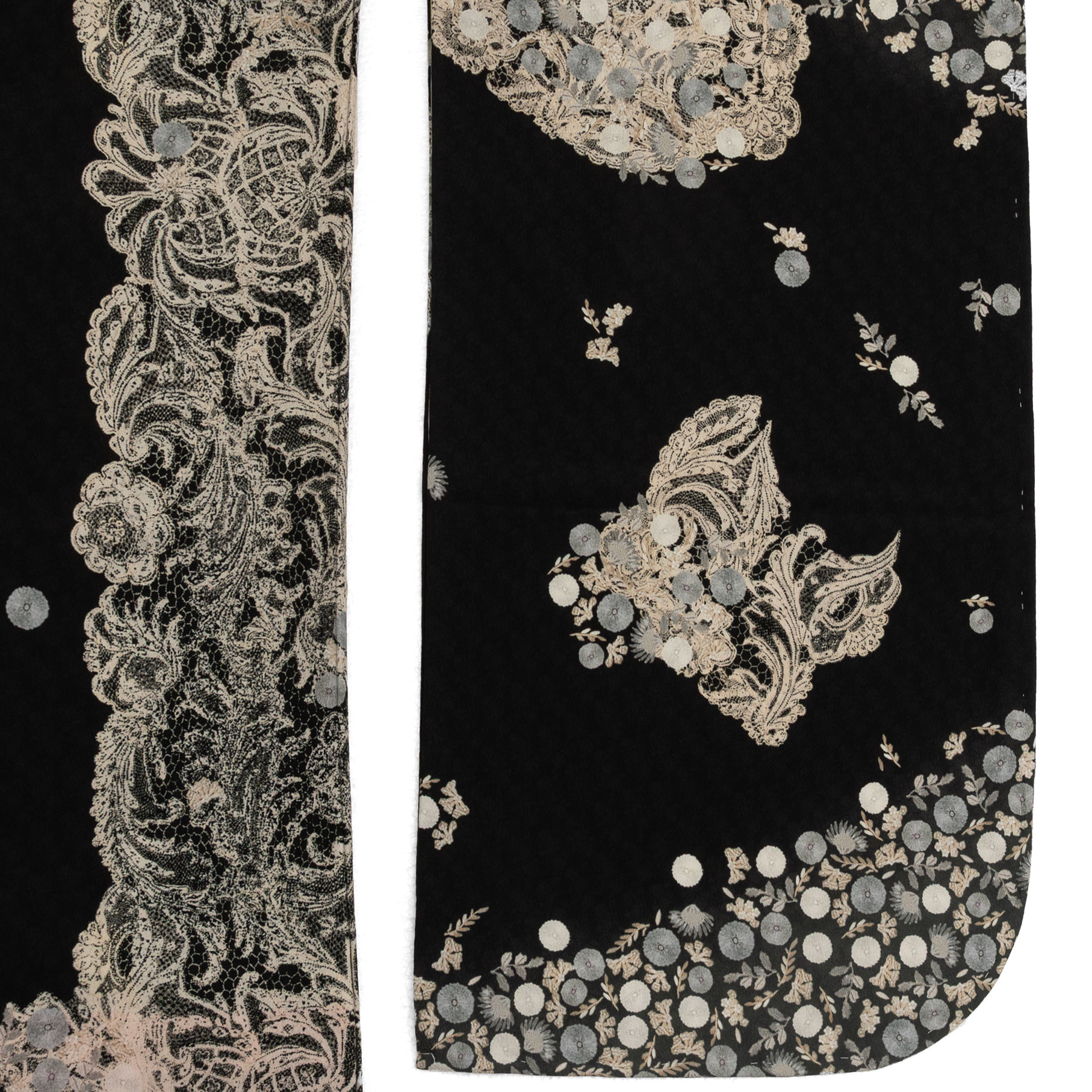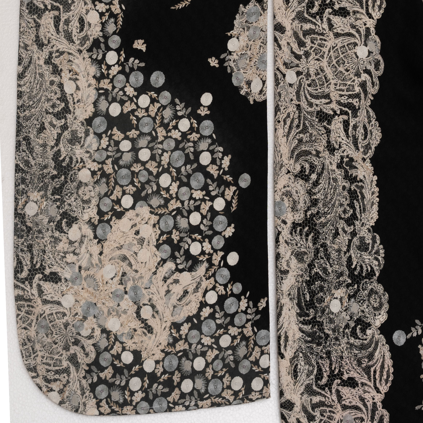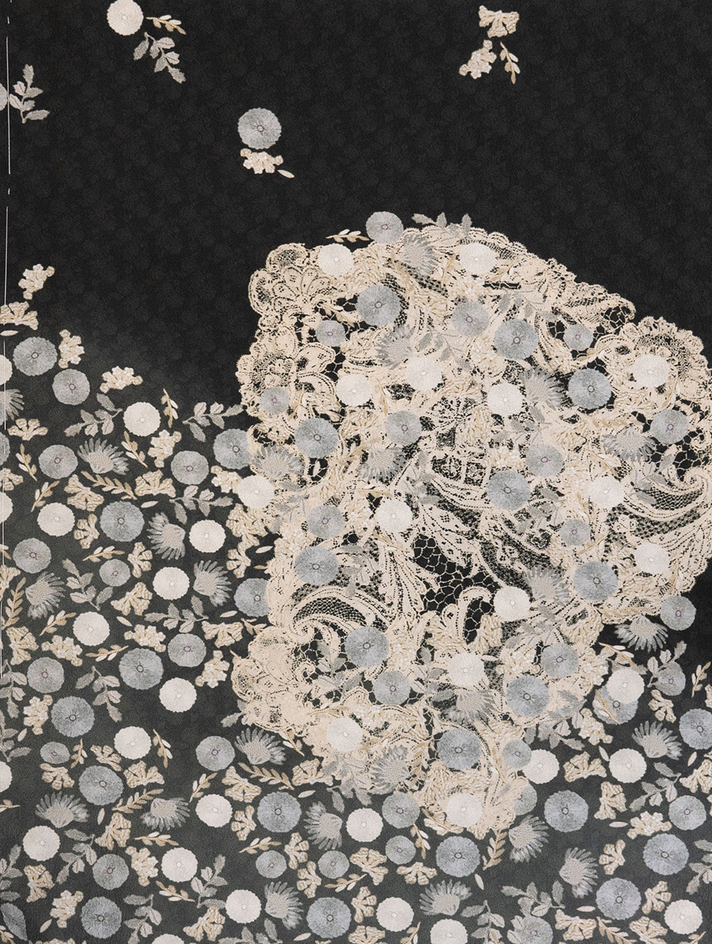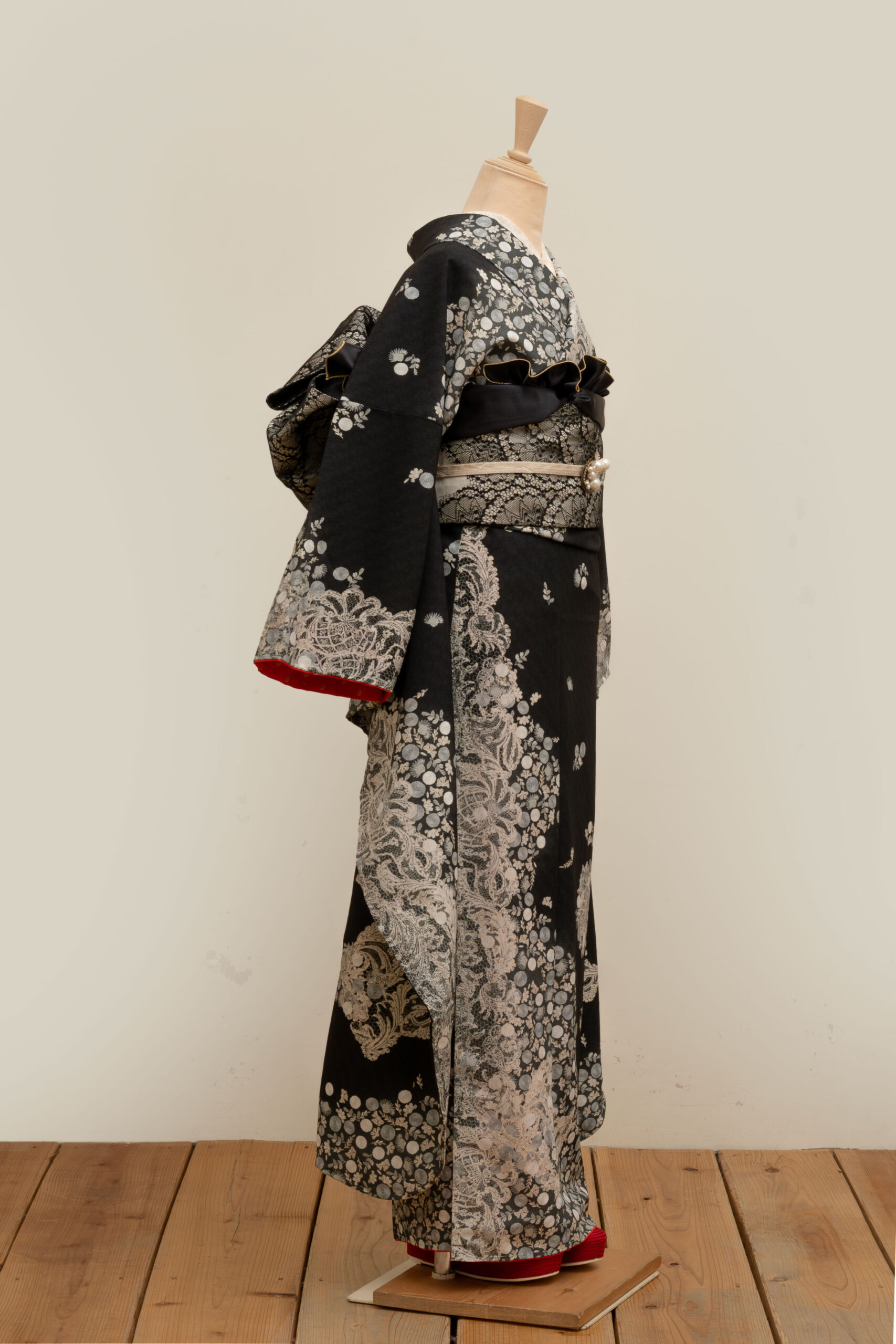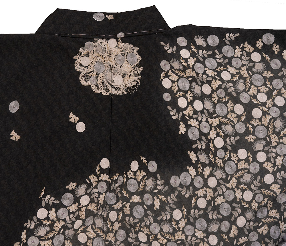 炭黒のベースと淡いトーンのモチーフのコントラストが美しいシックながらも華やかな印象