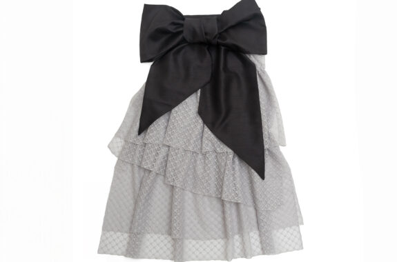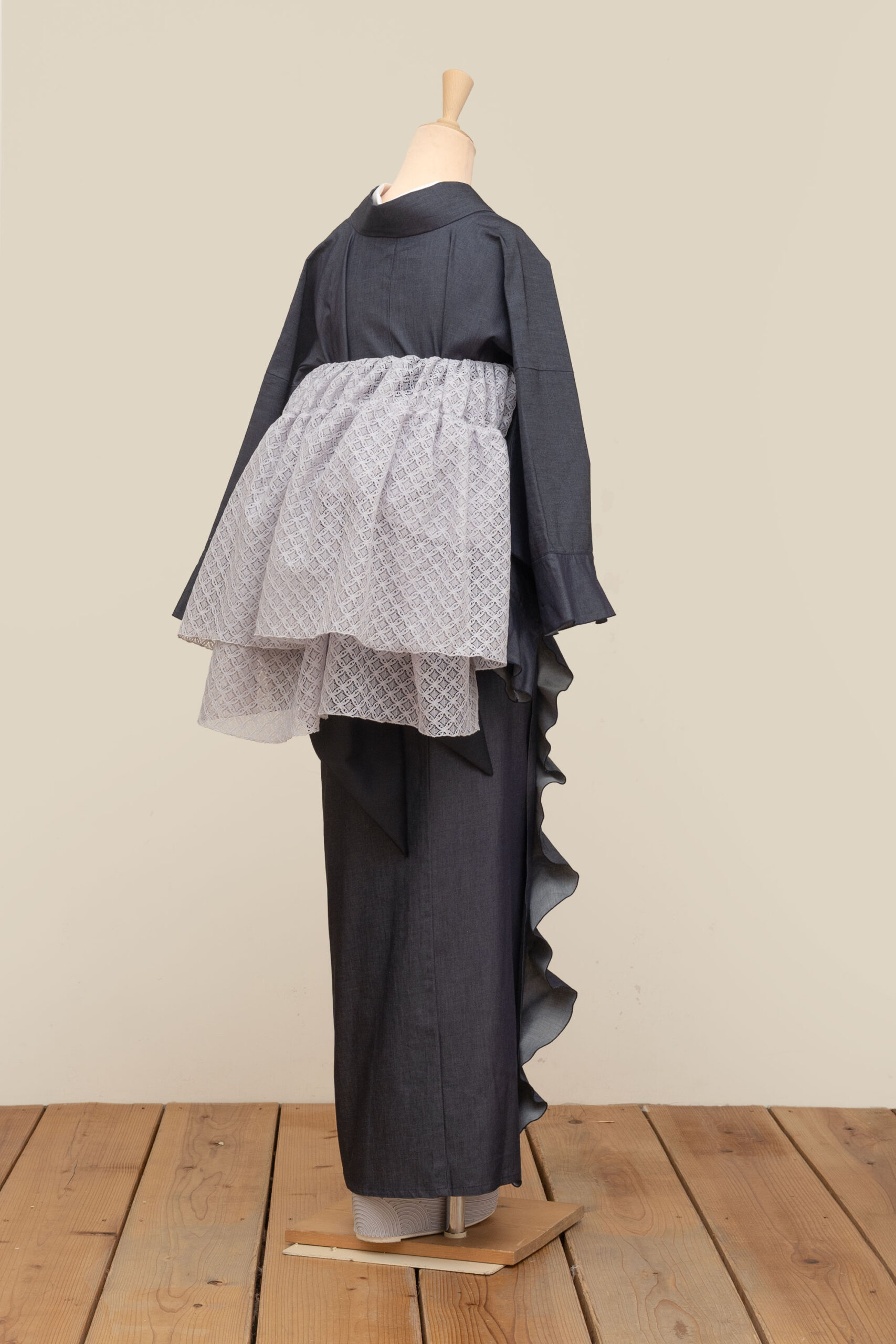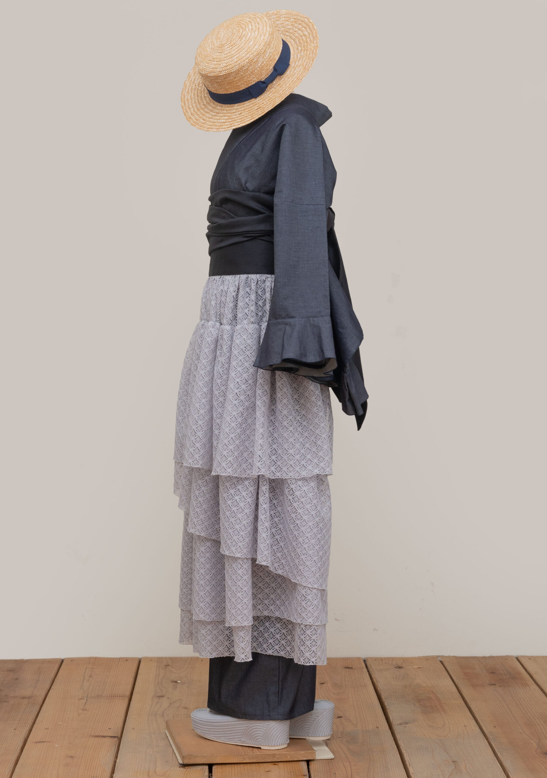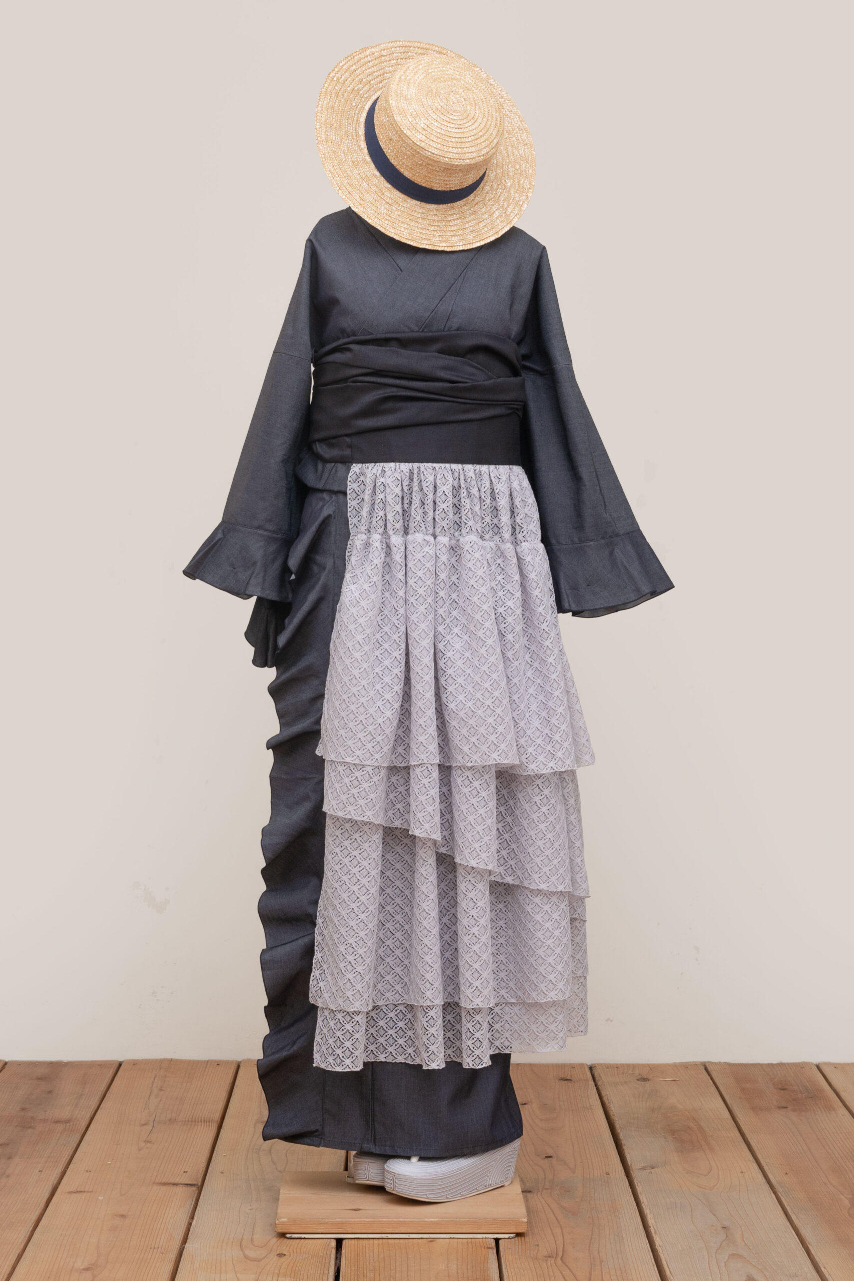 フリルの2段目が斜めにカットされているのでそのまま結んでも動きのある着姿になります。