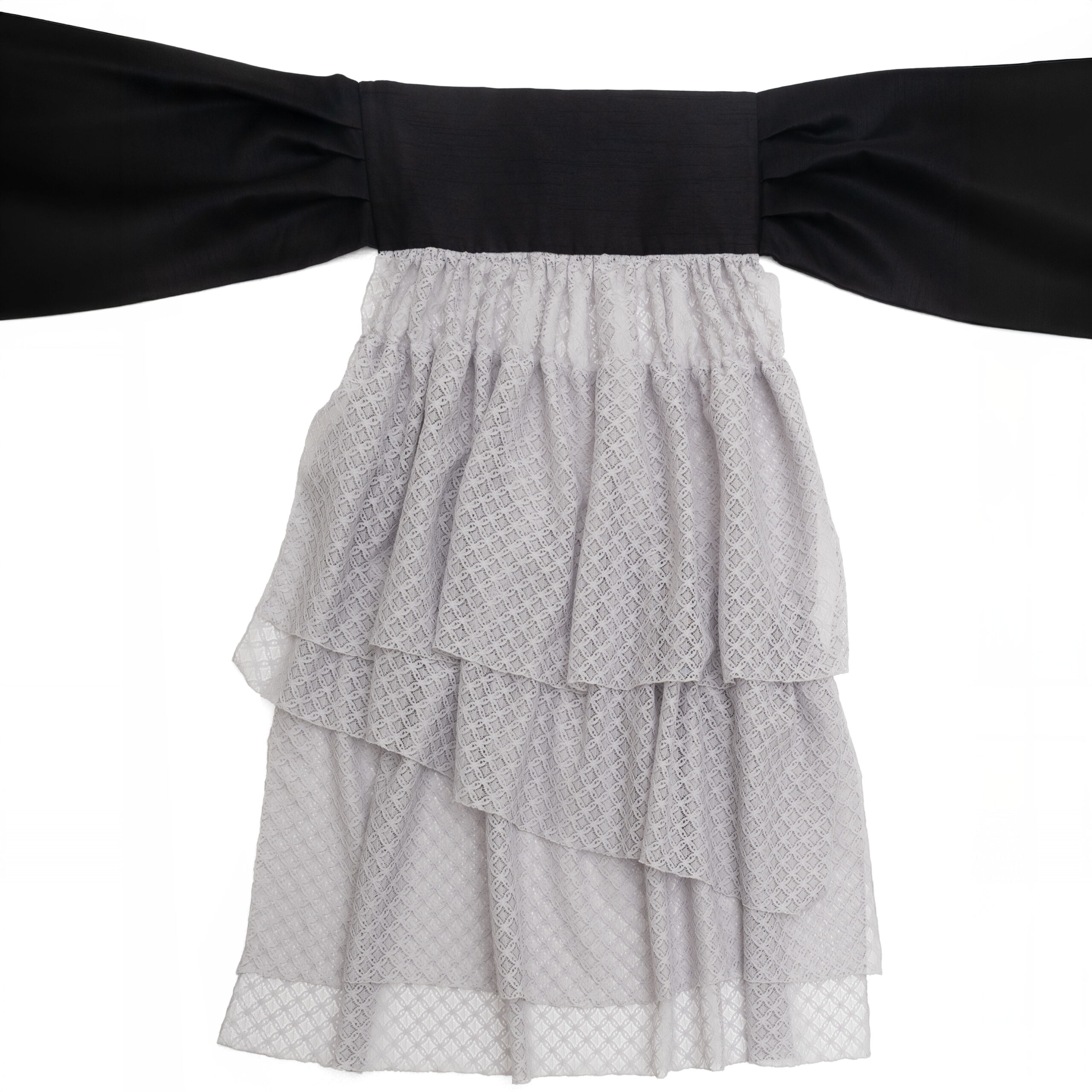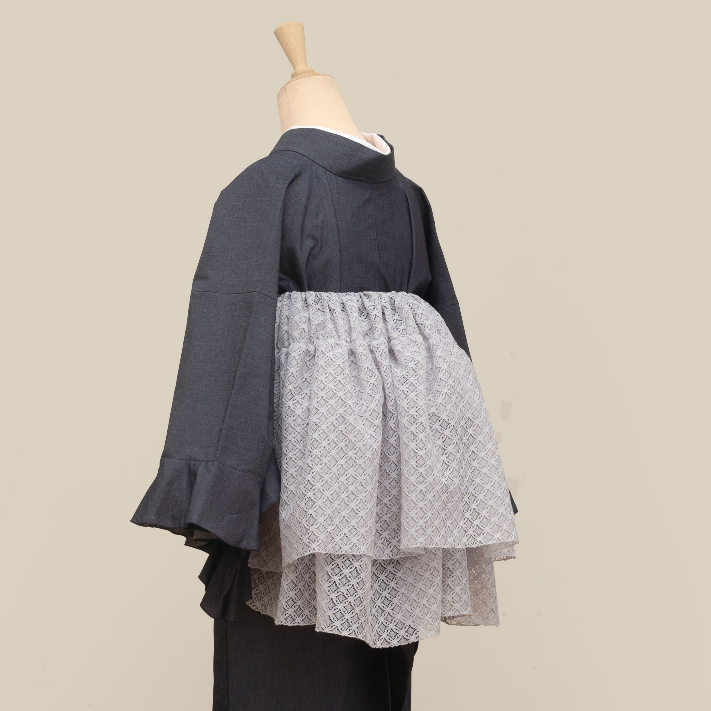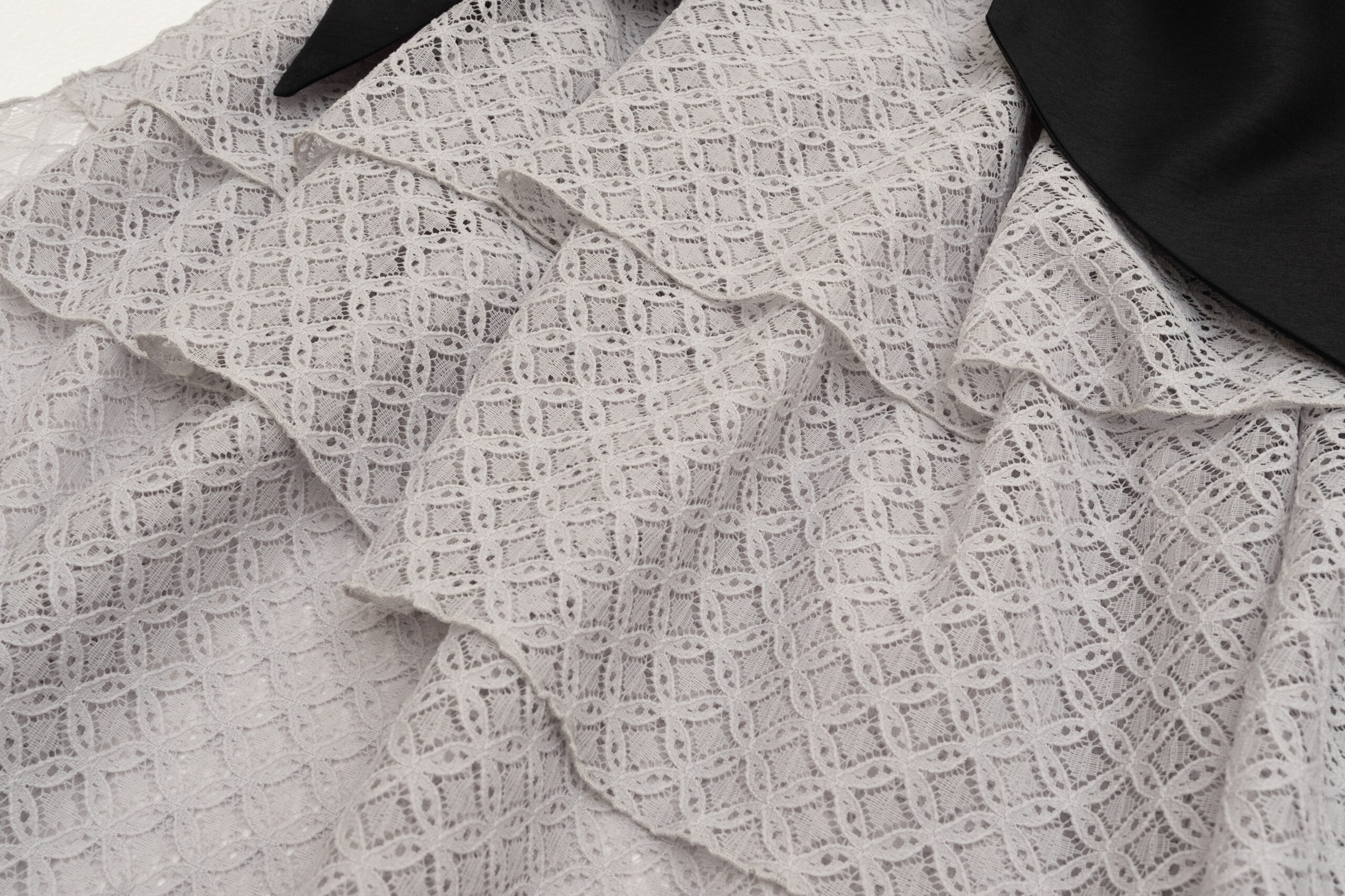 フリル部分は透け感のあるライトグレーカラーのレース素材を使用しています。